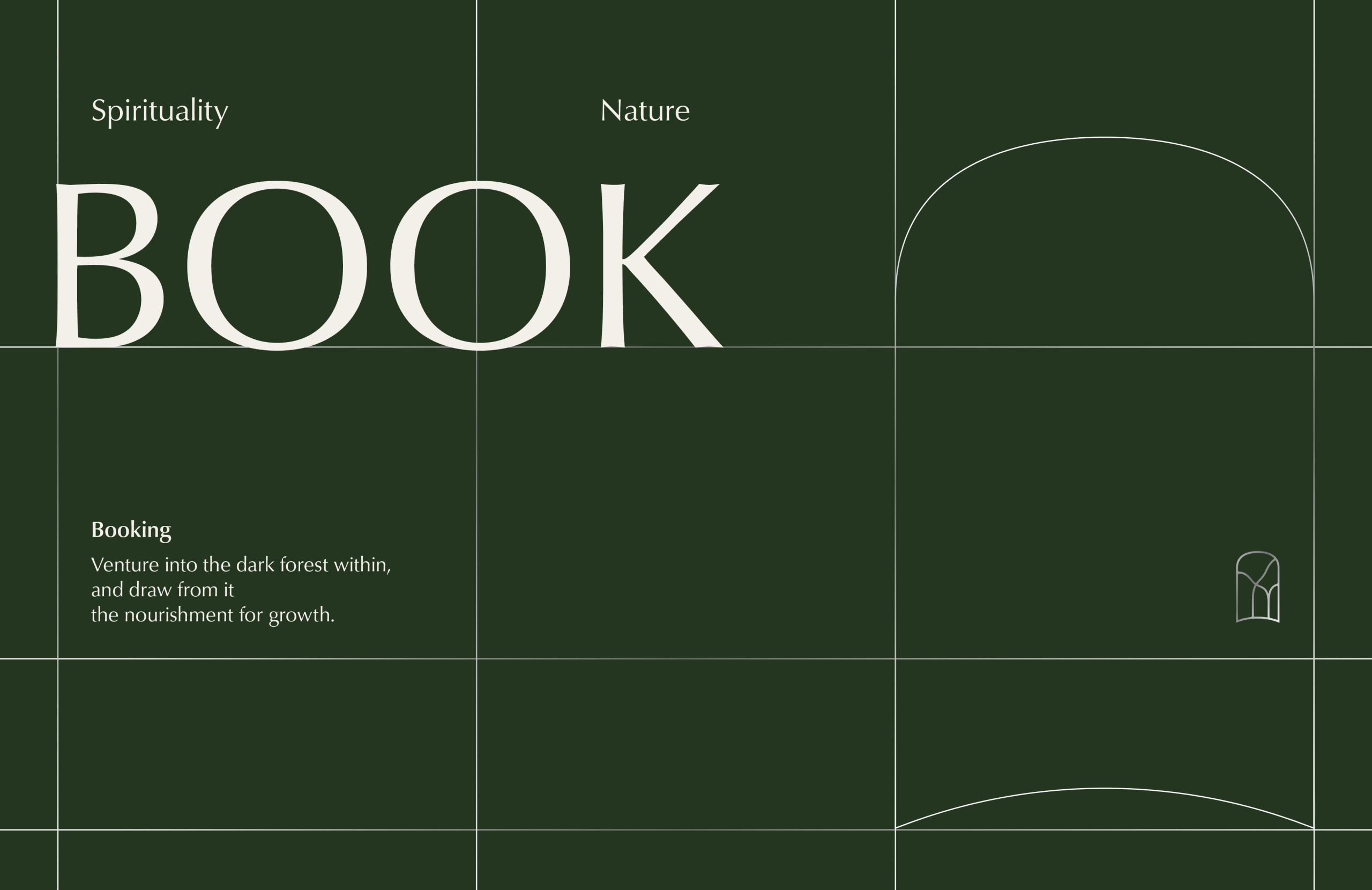 我們從品牌「希望成為人們內在探索陪伴者」的概念出發,提取「森林、書籍、內斂」三個關鍵字作為設計原點,說出品牌流動而細緻、不受框架拘束的閱讀想像。整體風格安靜而簡潔,讓閱讀這件事不再只是知識傳遞,更是一場內化的心靈旅行。因此,商標圖形設計源於「書脊」的元素發想,延伸出「門」的意象,採用流動、細緻的線條勾勒門扇般的輪廓。門內巧妙融合森林意象,彷彿開啟一本書的瞬間,也走入內在的黑森林,從中獲取成長的養分。品牌標準字則在現代感與書寫感之間尋找平衡,筆畫起頭以現代風格呈現,並呼應商標圖形的弧形線條,筆畫收尾則是以書法體呈現,帶出知性內斂的品牌氛圍。溫潤而有力量的標準字,展現品牌的知性氣質與內在深度。